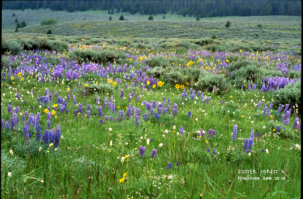 On July 25th 1874, General Custer led an expedition into the Black Hills on the Wyoming / South Dakota border through an astonishing valley of flowers. The botanists identified 52 varieties just within the circle of the camp. The soldiers decorated their horses with the flowers.